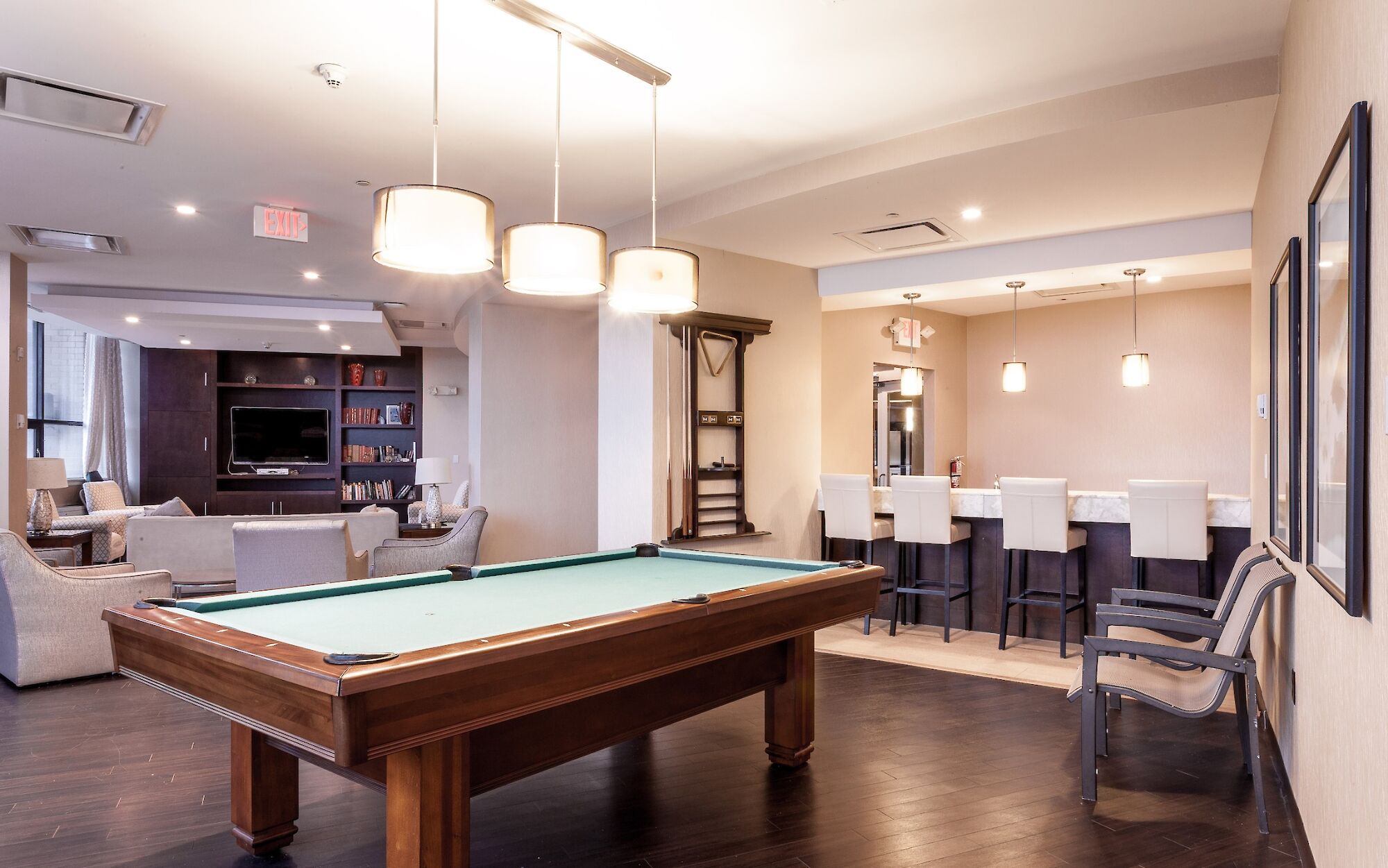 Entertain family and friends in the Clubroom with billiards and large screen high definition TV.